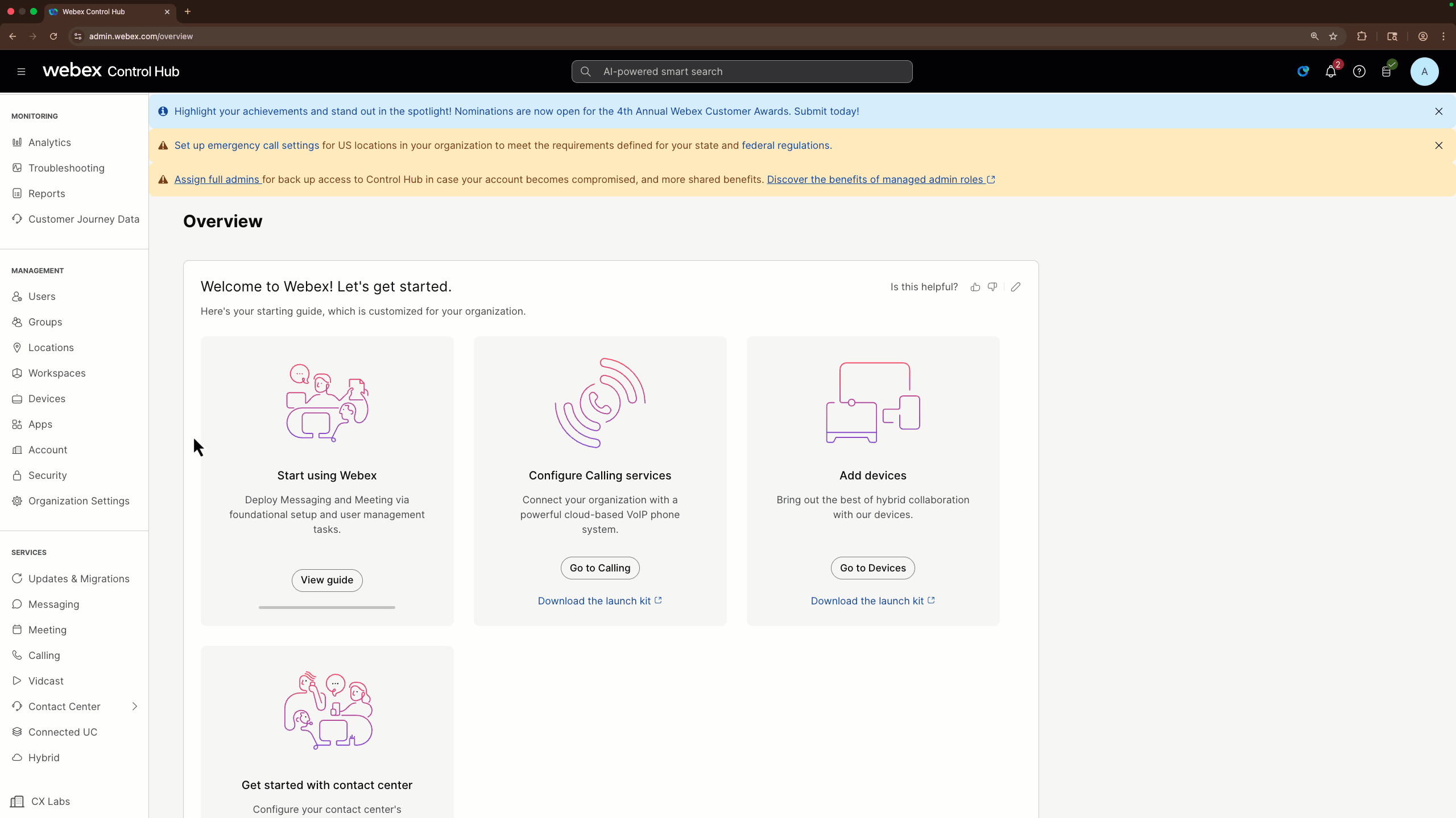 Go to Contact Center from the left side navigation panel, and under Quick Links, click on Webex AI Agent. This will open our AI Agent Studio. You are ready to proceed with your first lab.